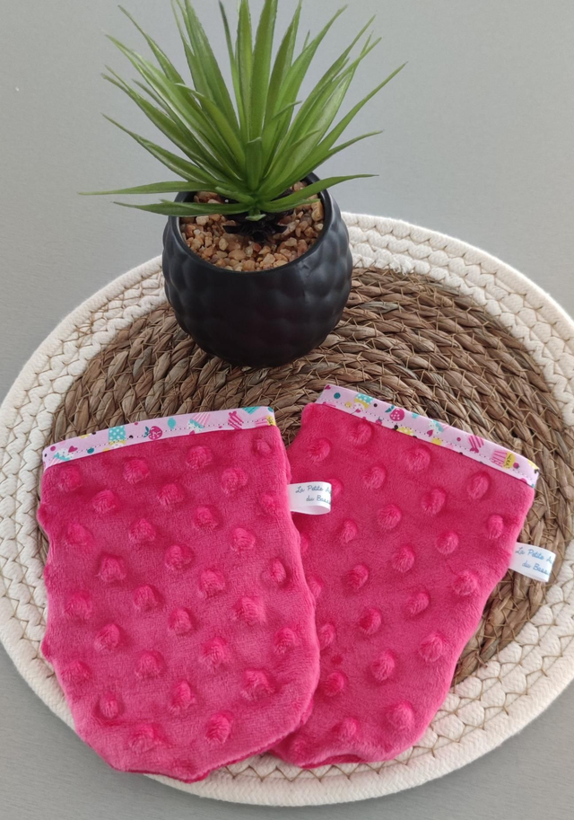 Gants grands minky X2 rose fushia cupcake