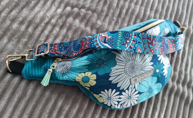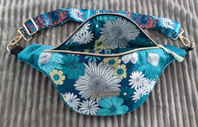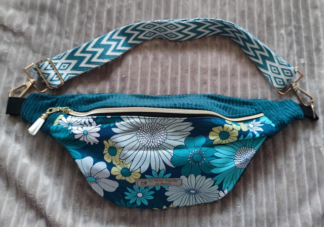 Sac banane fleurs bleues