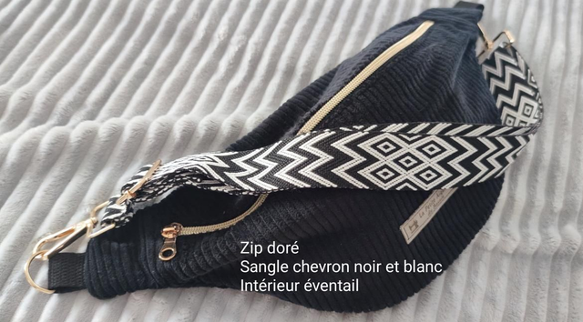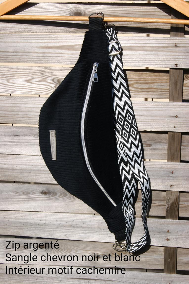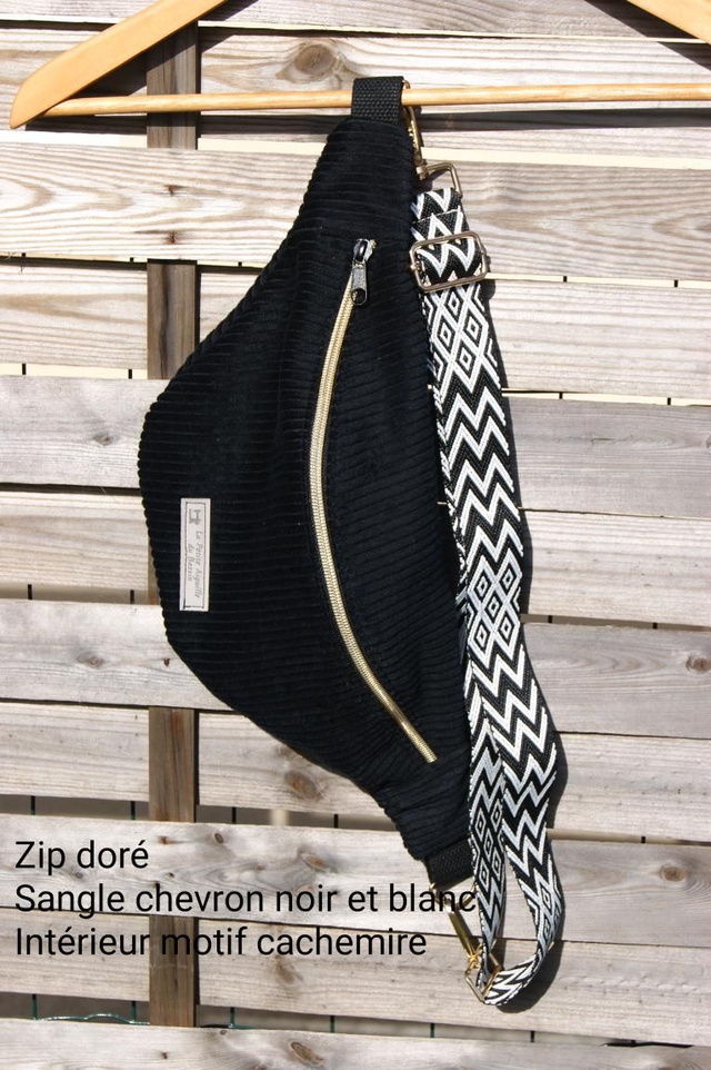 Zip doré sangle chevron noir et blanc intérieur motif cachemire
