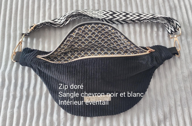 Zip doré sangle chevron noir et blanc intérieur éventail