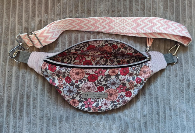 Sac banane petit, fleurs rose